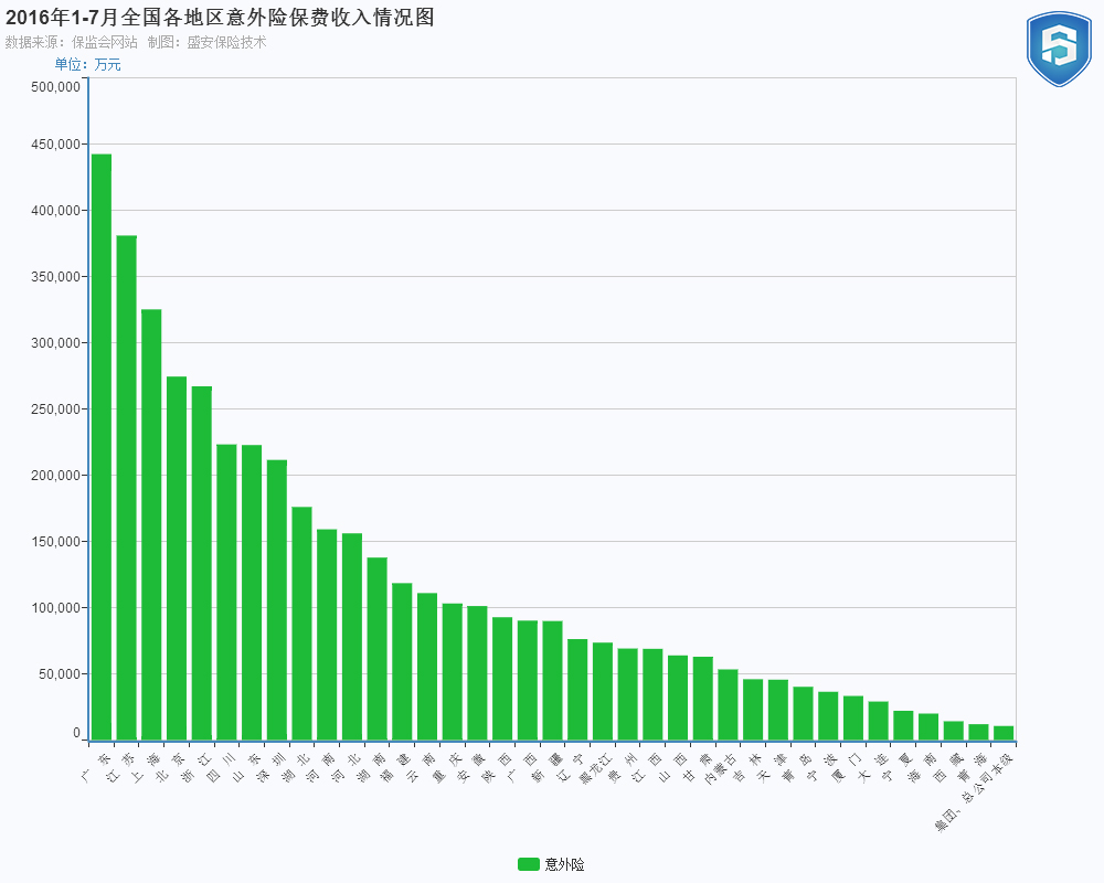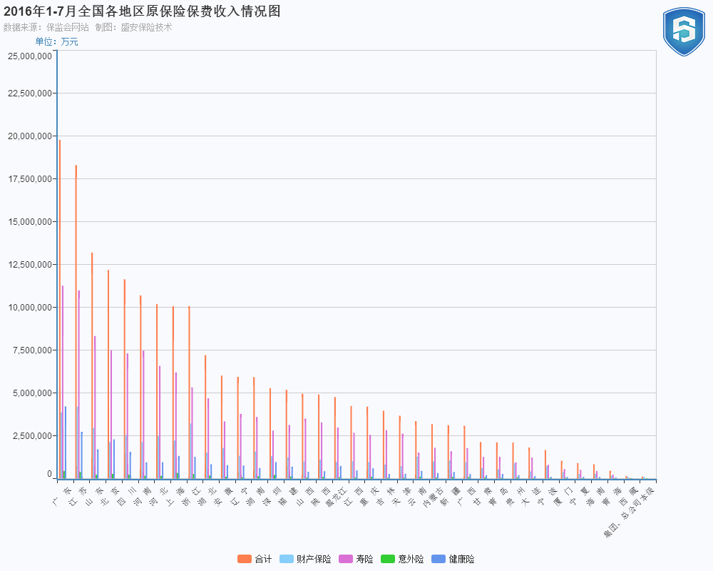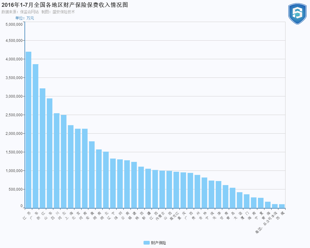 保险行业专栏:2016年1-7月全国各地区原保险保费收入情况汇总