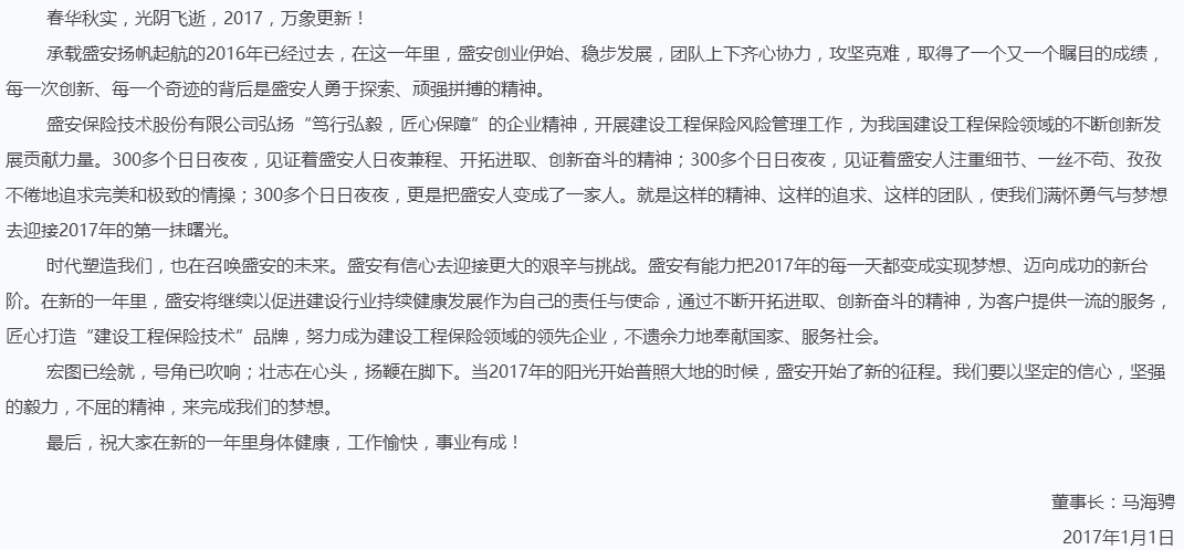 盛安保险技术董事长新年致辞