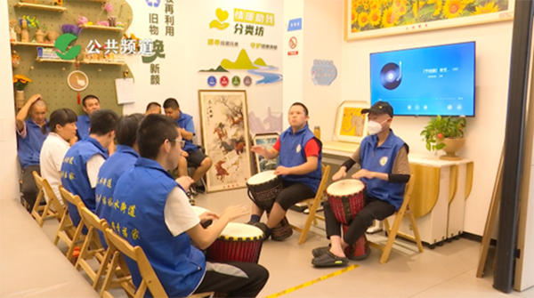 上午,在长水街道盛安残疾人之家里,“大家长”葛慧芳正在指导服务对象一起合奏非洲鼓,这是今年他们全新学习的技能,从一开始完全听不懂节拍、随意乱敲,到可以跟着音乐有节奏地敲击,再到现在几个人可以同步演奏,这背后大家一起付出了多少努力,葛慧芳都看在眼里。